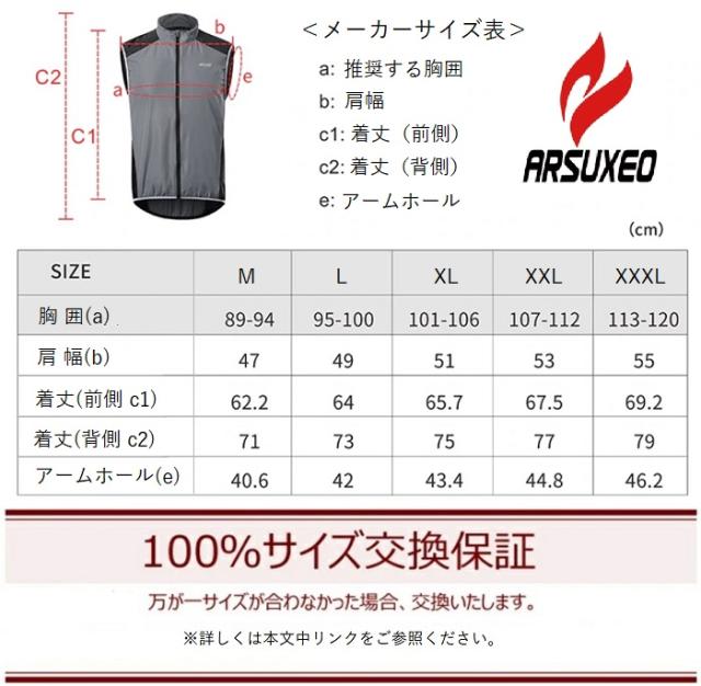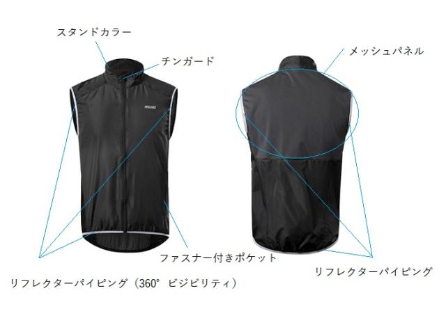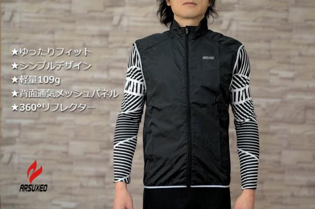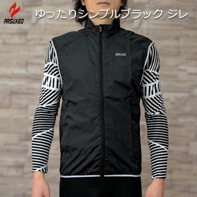 サイクルジレ ARSUXEO ゆったりシンプルブラック ジレ 防風 撥水 サイクリングベスト オールシーズン サイクルベスト サイクルジャージ サイクルウェア ロードバイク MTB サイクリング ポタリング ロングライド 防寒 反射 リフレクティブ 軽量 パッカブル シンプル