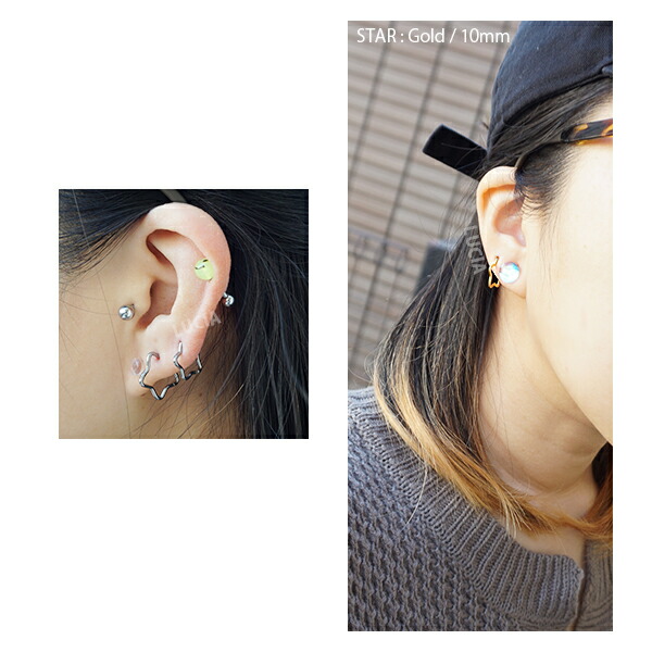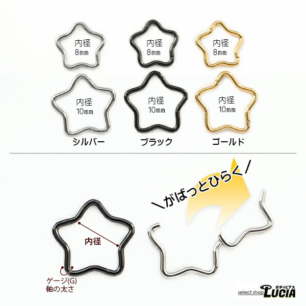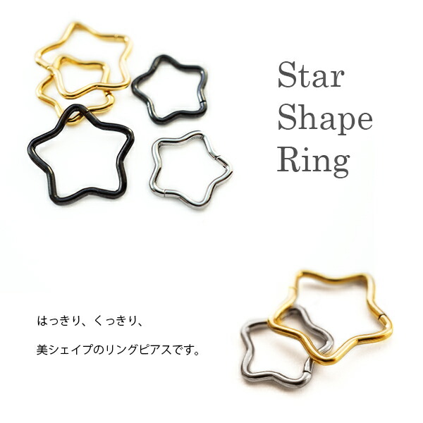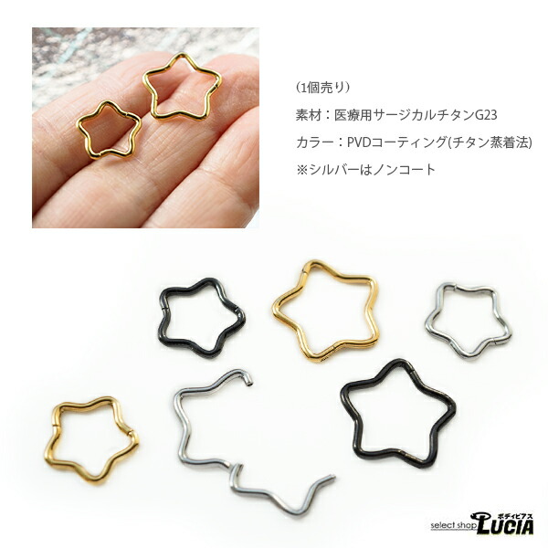 本日P2倍 チタン 16G 18G ピアス ボディピアス リングピアス 星 スター ワンタッチピアス カラー クリッカー セグメントリング フープ G23 軟骨