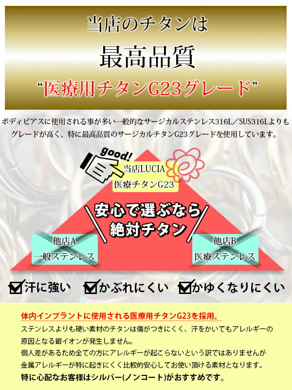 サージカルステンレス316Lよりも安全性が高く、とても軽い金属です。