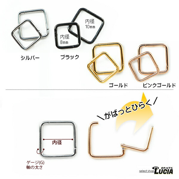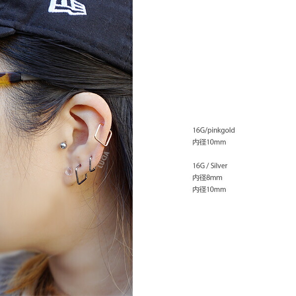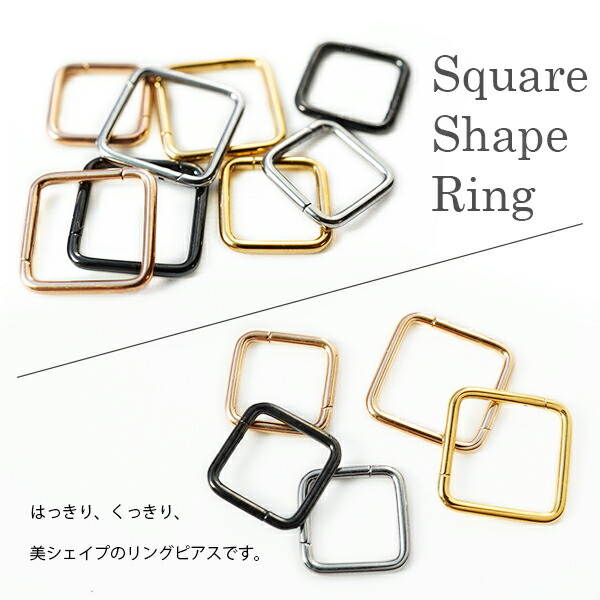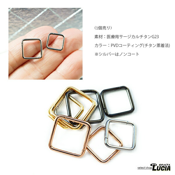 本日P2倍 チタン 16G 18G ピアス ボディピアス リングピアス スクエア ワンタッチピアス カラー クリッカー セグメントリング フープ ストレート G23 軟骨