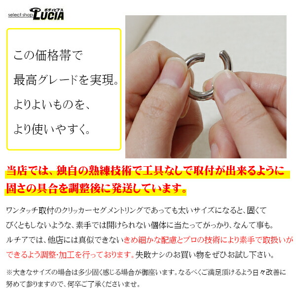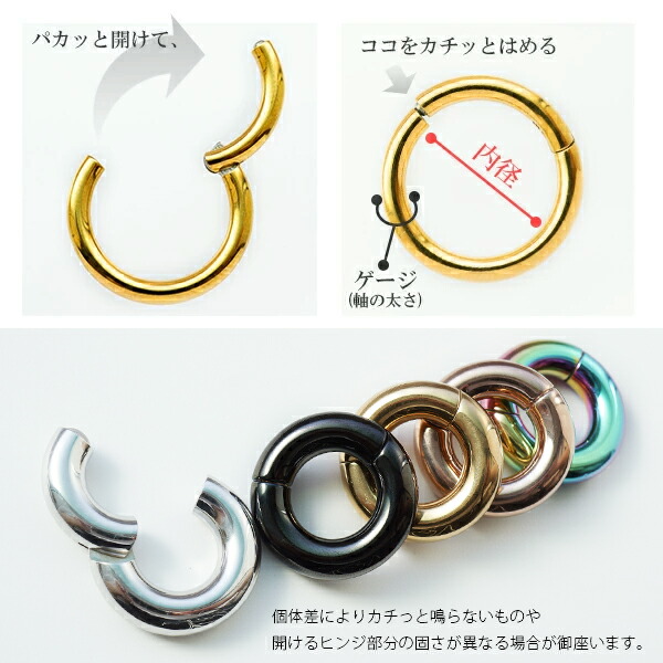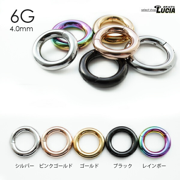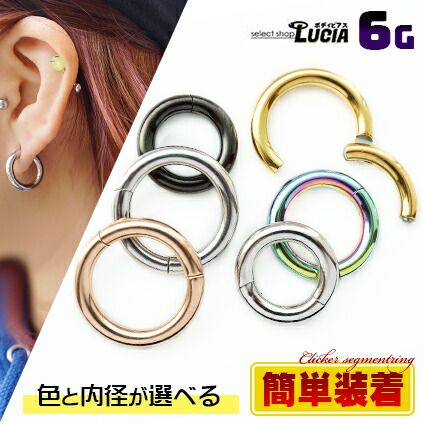 本日P2倍 調整済 簡単装着 6G カラー ボディピアス フープ ピアス クリッカーセグメント リング 金属アレルギー対応 医療ステンレス 316L つけっぱなし 拡張
