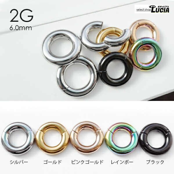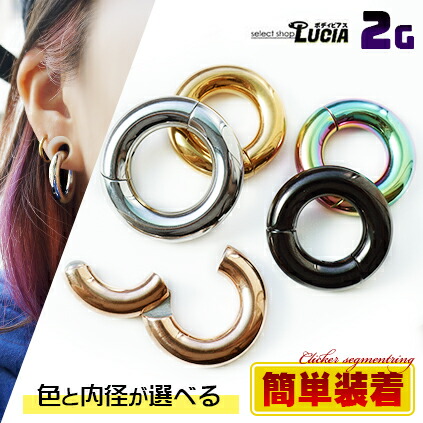 本日P2倍 調整済 簡単装着 2G カラー ボディピアス フープ ピアス クリッカーセグメント リング 金属アレルギー対応 医療ステンレス 316L つけっぱなし 拡張