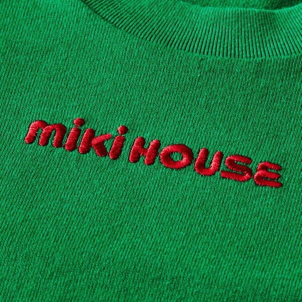 胸元のロゴの刺繍は光沢のある糸を使用し、上品でミキハウスらしい赤と白で、サイズが大きくなりました。