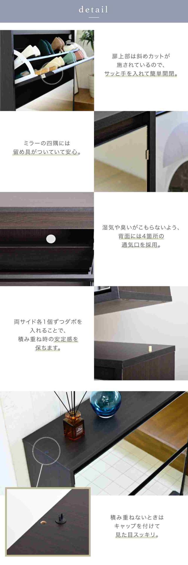 扉にはミラーを付けているので、お出かけ前の足元チェックにも活躍します。