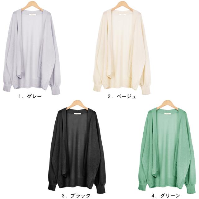 カーディガン ニット レディース トップス UVカット 透け感 シアー 薄手 長袖 トッパー 前開き 羽織り シンプル 無地 ガウン ショート丈 オフィスカジュアル きれいめ サマーニット ラッシュガード 送料無料 fk25 (bdg474)