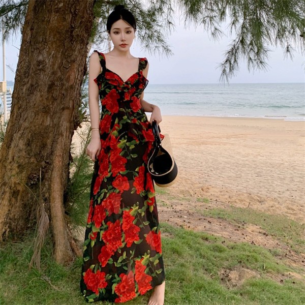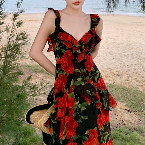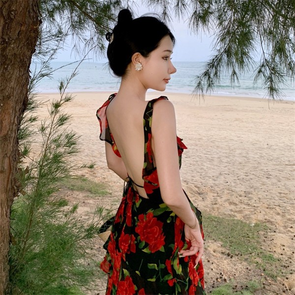 【レビュー投稿で+5%還元】セクシー リゾートワンピース バックシャンワンピース 夏復古ワンピース 沖縄 ハワイ 結婚式 スクエアネック エンジェルスリーブ 花柄ワンピース リゾートワンピ フリル ワンピース 夏 大柄 ショール丈 サマー ゆったり ビーチ 旅行 おしゃれ