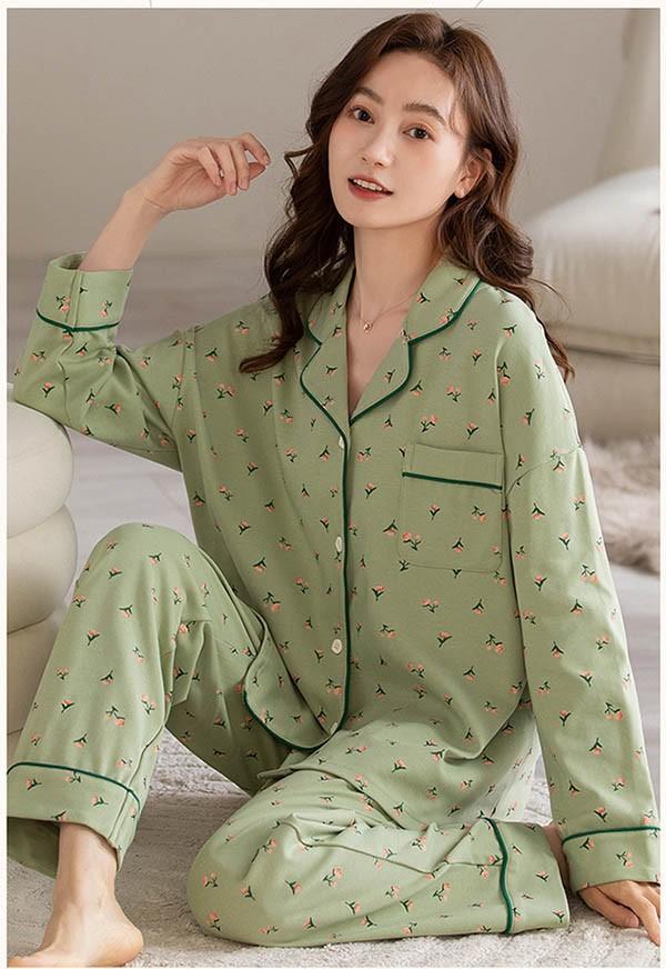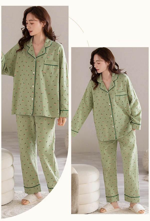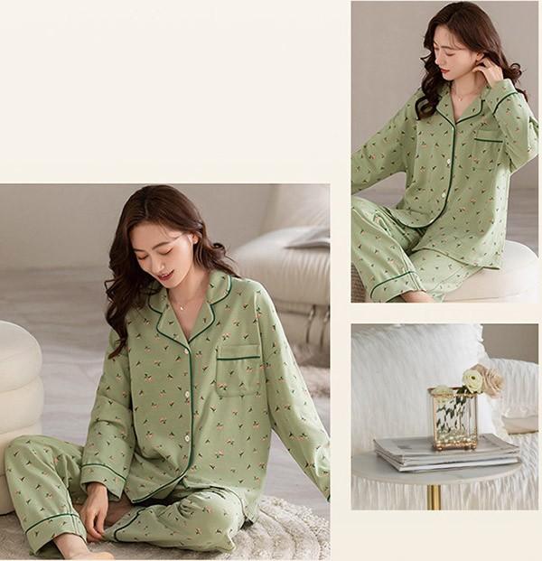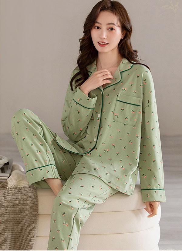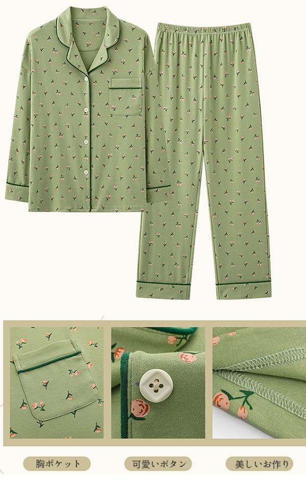 【レビュー投稿で+5%還元】ルームウェア レディース パジャマ 小花柄 かわいい 上下セット 可愛い コットン ルームウェア 長袖 部屋着 大人 体型カバー やわらか 涼しい お洒落 パジャマ 誕生日 ギフト 結婚祝い プレゼント きれいめ bi038ze
