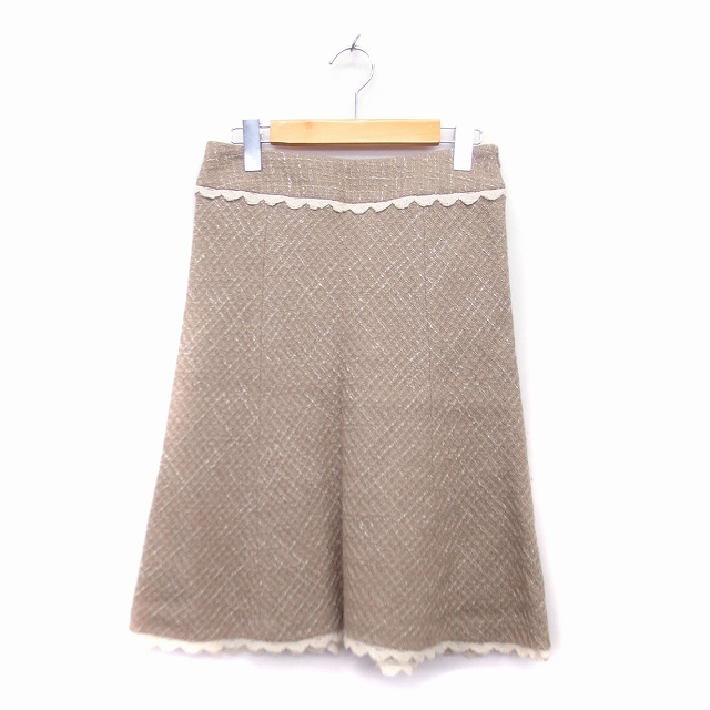 【中古】ドゥファミリィ ドゥファミリー DO!FAMILY スカート フレア 膝丈 ウール フリル M ベージュ /KT41 レディース