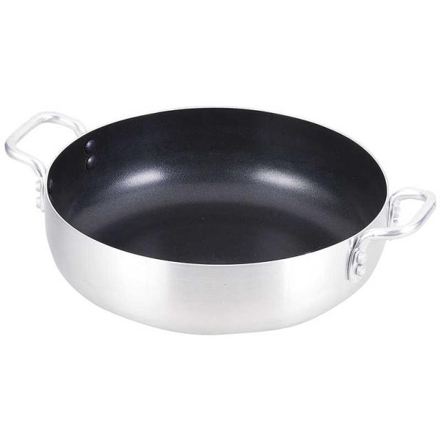 ●材質: 表面加工=内面=ふっ素樹脂塗膜加工 材料の種類=本体=アルミニウム合金 はり底=ステンレス鋼(クロム16%)
