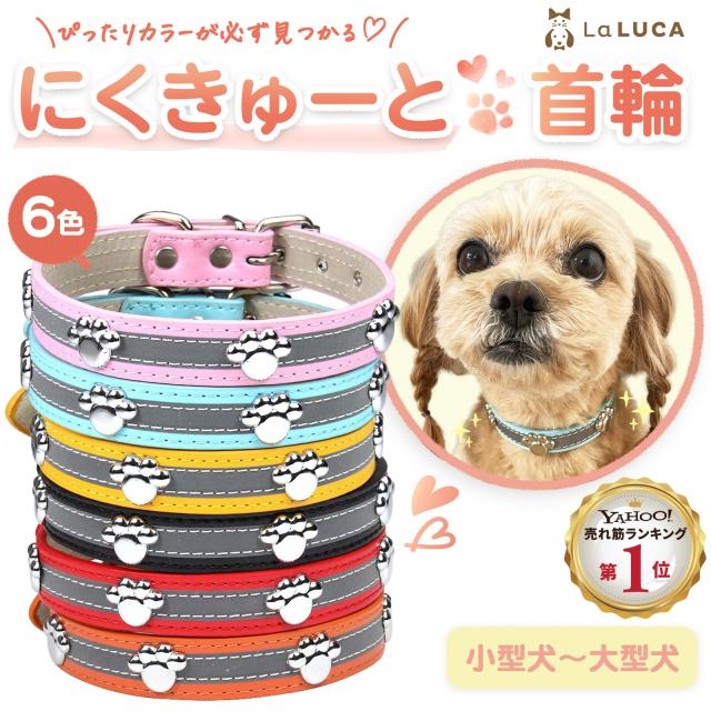 にくきゅーと首輪 首輪 犬 首輪 猫 首輪 おしゃれ 革 定番 スタンダード PU レザー 反射素材 小型犬 中型犬 散歩 かわいい 人気 肉球 デザイン LaLUCA 送料無料