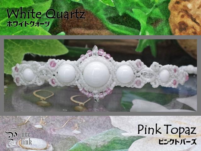 スノーホワイト雪白の魔石『ホワイトクォーツ』『トパーズ』マクラメ編みブレスレット