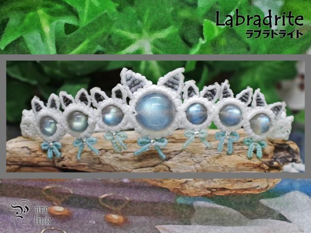 7匹の猫達?『ラブラドライト』猫耳(*Φω-)マクラメ編みニャンコブレスレット
