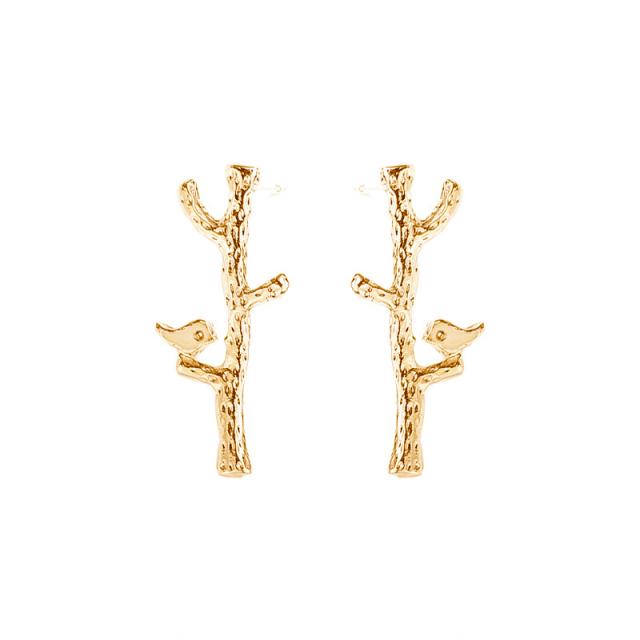 ★ 両耳用 枝 小鳥 ピアス ★ レディース ジュエリー ピアス 耳飾り イヤリング スタッド オシャレ アクセサリー 2色 K74-3