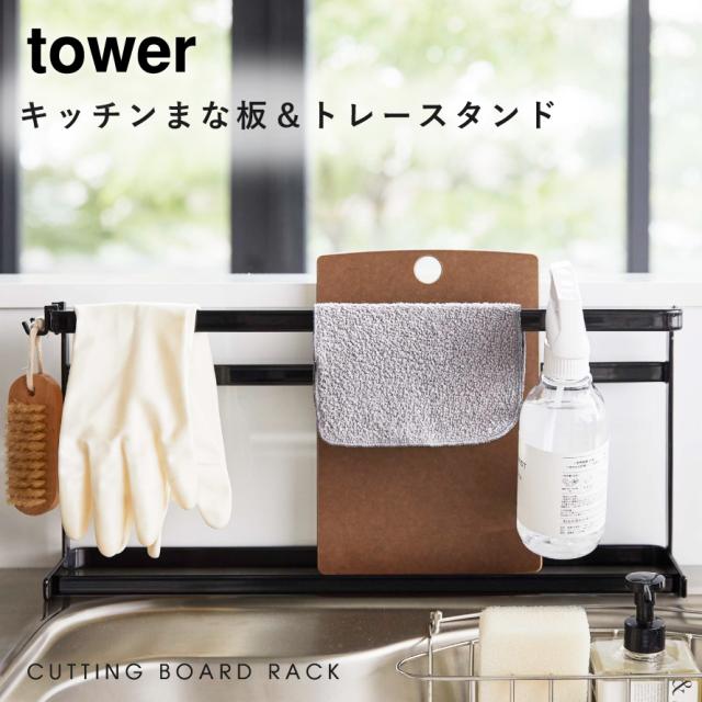 まな板 スタンド まな板立て スリム 山崎実業 タワー まな板スタンド トレー 収納 キッチン キッチンまな板&トレースタンド タワー