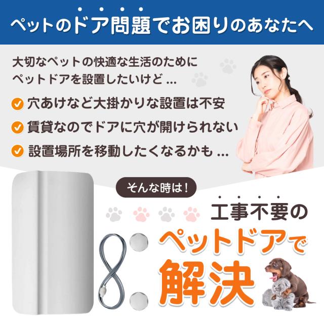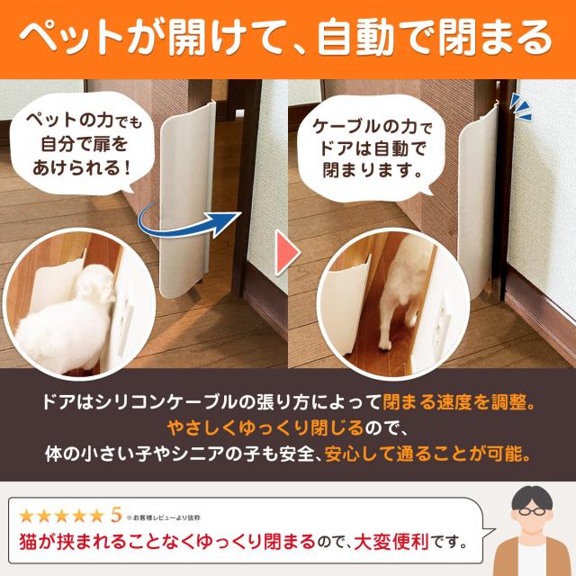 ペットドア キャットドア 工事不要 猫ドア ネコ 犬 引き戸 穴あけ不要 取付簡単 賃貸設置 室内 扉 ペット 出入り口 後付け ペット用ドア ネコドア 穴開けない 取り付け ドア キャット用ドア 猫用ドア 犬用ドア 白 ホワイト 送料無料