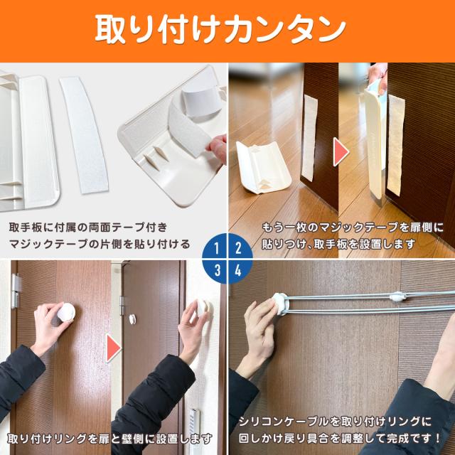 ※ケーブルを使用した状態ではドアを閉めても1cm-2cmの隙間ができます。使用しない場合は取り外してください。
