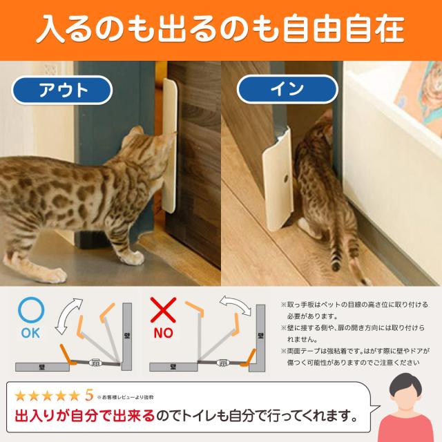 ペット用の取手板は粘着テープ設置で簡単取り付け