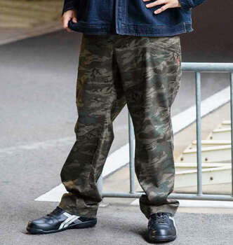 前開きファスナー/ストレッチ/消臭テープ(股下)/消臭/イージーケア/サイド・バック・カーゴポケット有/ウエストアジャスター仕様/Dカン/ベルトループ7本/迷彩柄/股下シック付き