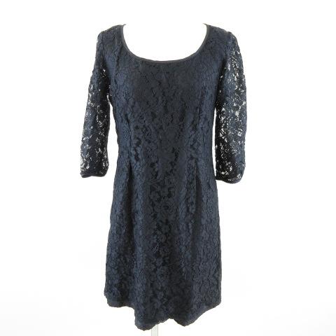 【中古】ボナジョルナータ BUONA GIORNATA レースワンピース 七分袖 ミニ 紺 M *A578 レディース