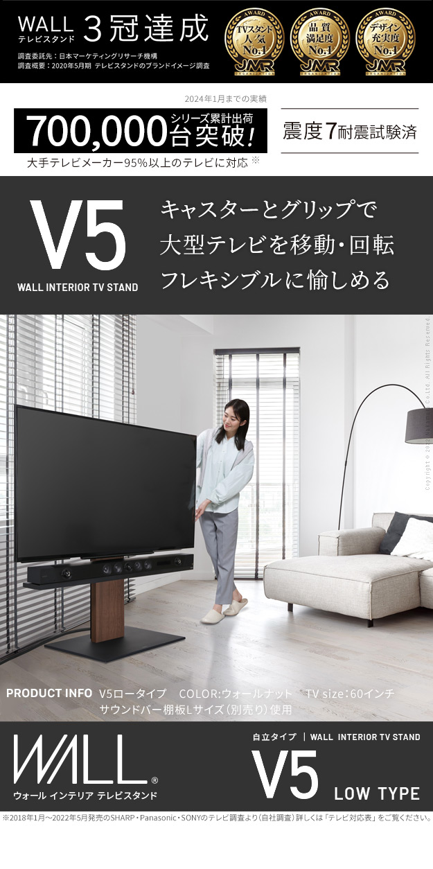 移動も楽々 キャスター付き テレビスタンド V5 ロータイプ 【送料無料】 WALL インテリア 壁寄せ テレビスタンド 自立 おしゃれ 地震 80インチ 80型