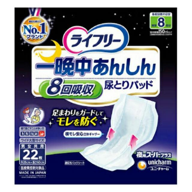 ユニチャーム ライフリー 一晩中あんしん尿とりパッド スーパープラス 8回 22枚 大人用紙おむつ 補助パッド 男女共用