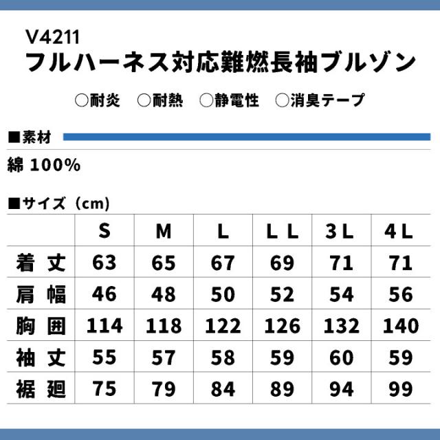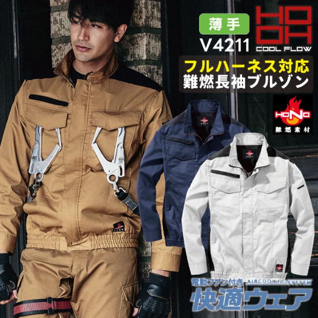 V4211 空調作業服 服のみ フルハーネス対応 難燃長袖ブルゾン 綿100% 男女兼用