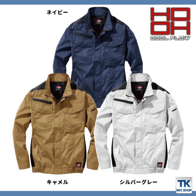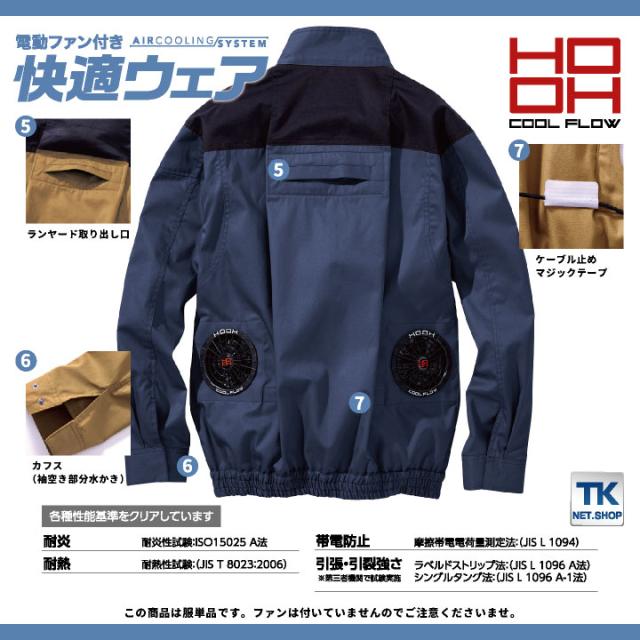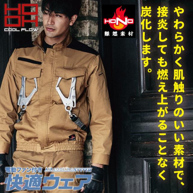 HOOH 綿100% 難燃 長袖 ブルゾン フルハーネス対応 薄手生地 制電 ファン無し メンズ レディース 快適ウェア 空調ウェア 熱中症対策 春夏 作業服 作業着 鳳凰 村上被服 空調作業服 単品 mh-v4211-t