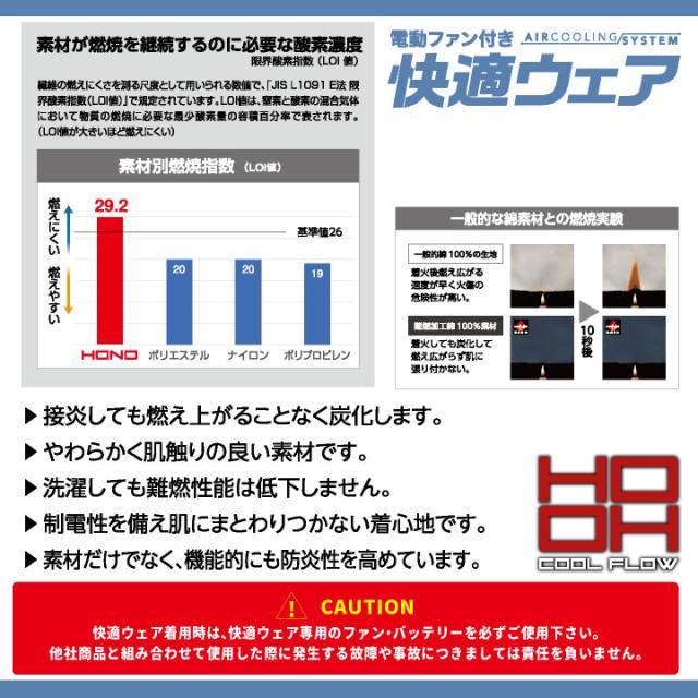 フルハーネス対応のHONOは難燃加工綿100%で作られた耐炎・耐熱・制電性に優れた素材です。
