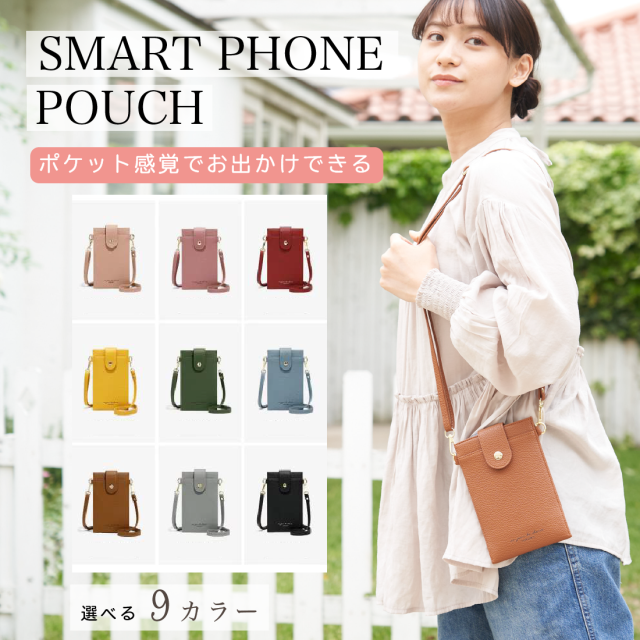 キャッシュやカードは最小限、電子マネーやアプリでお財布レスの時代にピッタリの スマホポーチです。