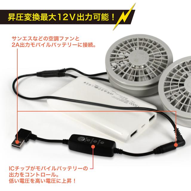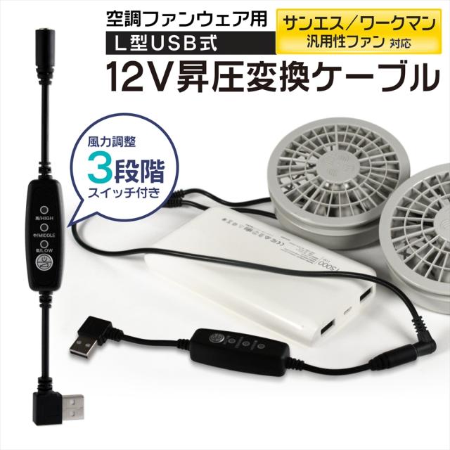 12V USB昇圧 アダプター L型 ワークマン対応 サンエス対応 13V ファン付き作業服 QC3.0 モバイルバッテリー Quick Charge 3.0クイックチャージ 変換 昇圧ケーブル ケーブル ハイパワー 電圧不足 USB-A端子 昇圧コンバータ スイッチ付き 【12V-A】