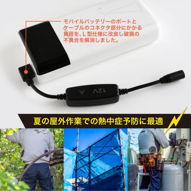 ・このアダプタにより、モバイルバッテリーをファン付き作業服のバッテリーとして使用できるようになります。