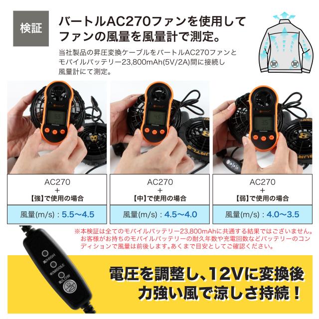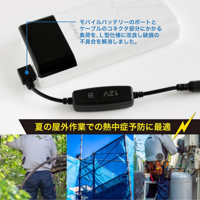 ・このアダプタにより、モバイルバッテリーをファン付き作業服のバッテリーとして使用できるようになります。