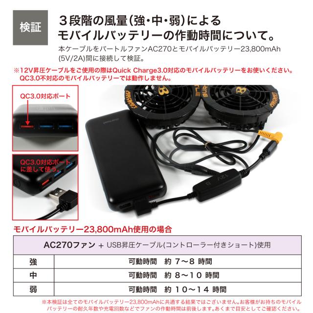 12V USB昇圧 アダプター L型 バートル対応 DC12V ファン付き作業服 QC3.0 モバイルバッテリー 13V AC270 AC240 Quick Charge 3.0 クイックチャージ 変換 昇圧 昇圧アダプタ 昇圧ケーブル ケーブル ハイパワー 電圧不足 USB-A端子 昇圧コンバータ スイッチ付き 【12V-B】