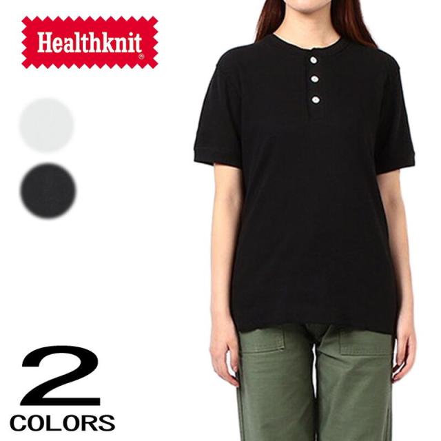 交換送料片道無料 ヘルスニット Healthknit ウェア ベーシックワッフル ヘンリーネック 半袖 Tシャツ 無地 601S オフ ブラック [WA