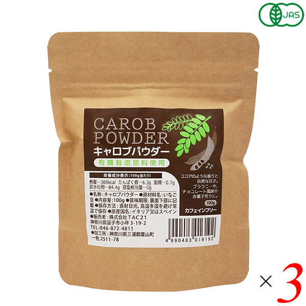 【超BIGラリー!ポイント最大+16%!】キャロブパウダー 100g 3個セット TAC21 キャロブ いなご豆 カフェインフリー 送料無料