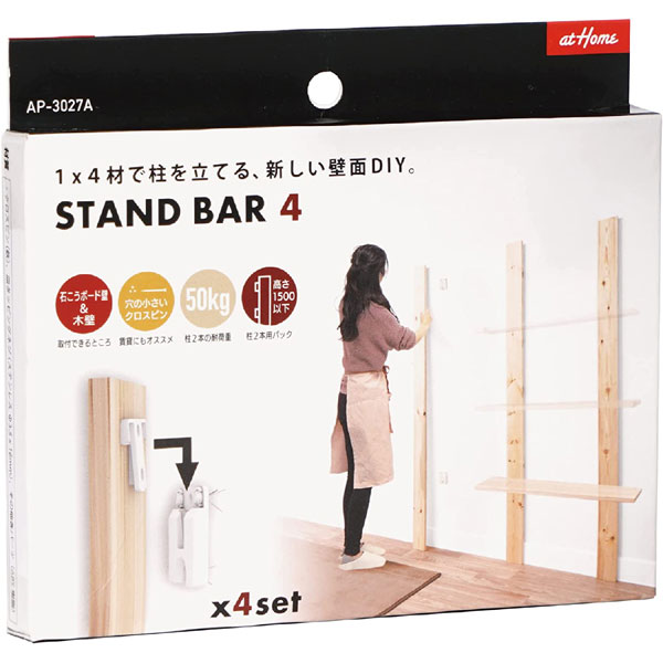 【メール便送料無料】AIWA アイワ金属 壁面DIYパーツ STAND BAR4 スタンドバー 4組入 AP-3027A