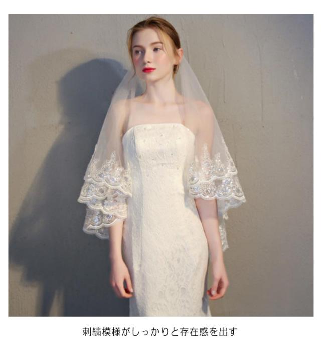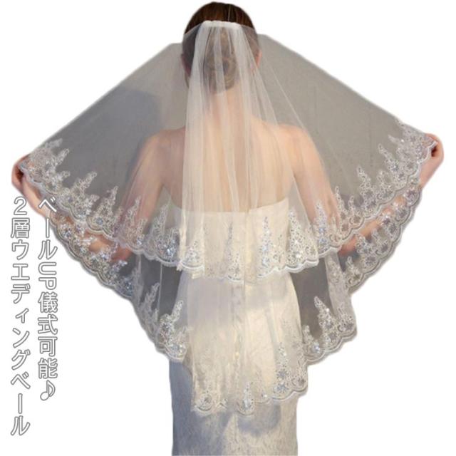 | ベールUP儀式可能♪2層ウエディングベール 広がりすぎない控えめなミドルベール♪ 刺繍模様がしっかりと存在感を出す | |