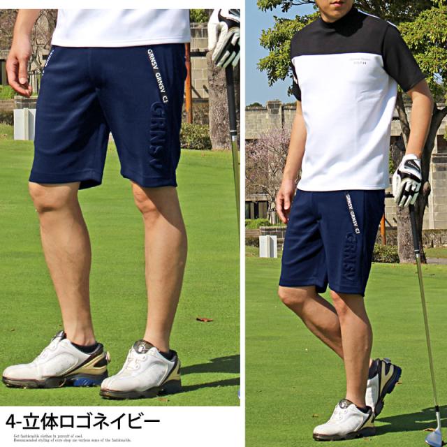 立体エンボスロゴ型押しポケットロゴタイプのゴルフハーフパンツ2種類展開。
