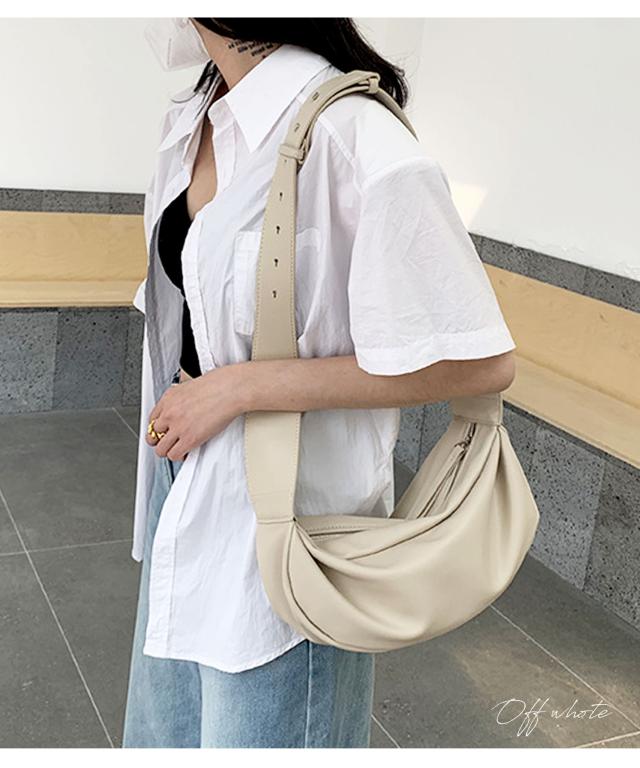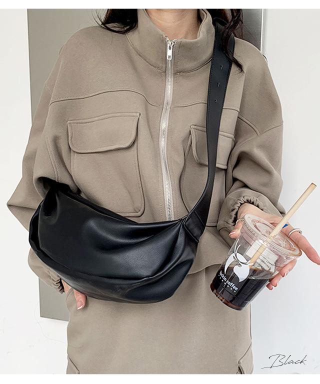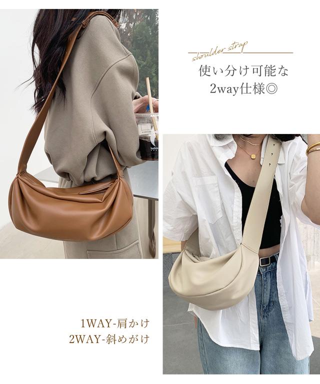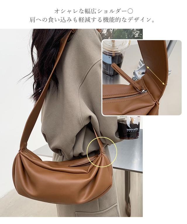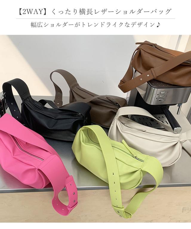 【ワイド幅ショルダーデザイン/2WAY/斜めがけ/くったり横長フォルムがオシャレなレザーショルダーバッグ】