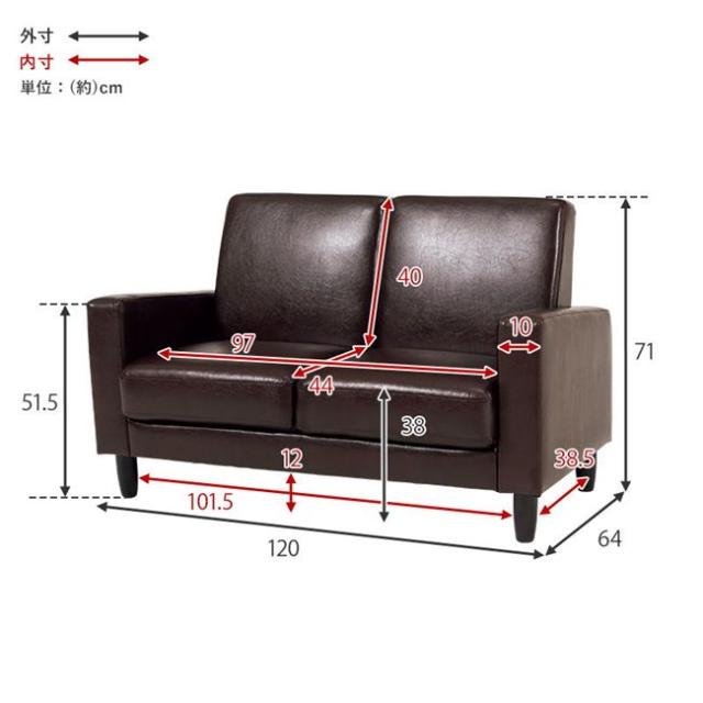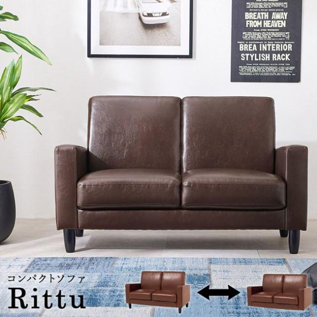 ソファ 2人掛け ソファー コンパクト 合成皮革レザー 簡単組立 脚付き