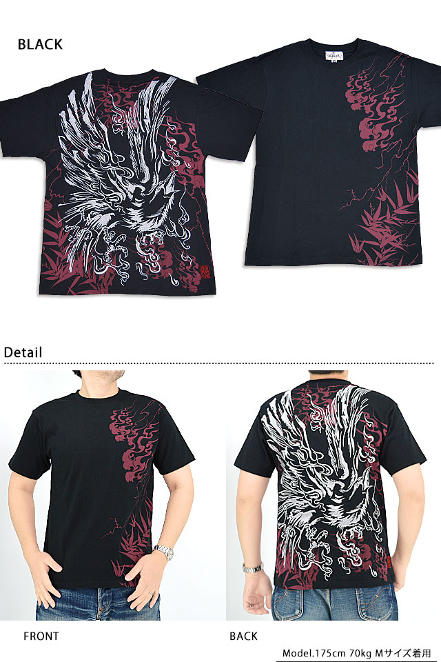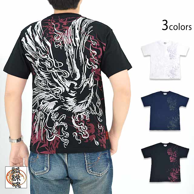 | 八咫烏火炎刺繍半袖Tシャツ◆絡繰魂 KKD-M23571 | |||||||||||||||||||||||||