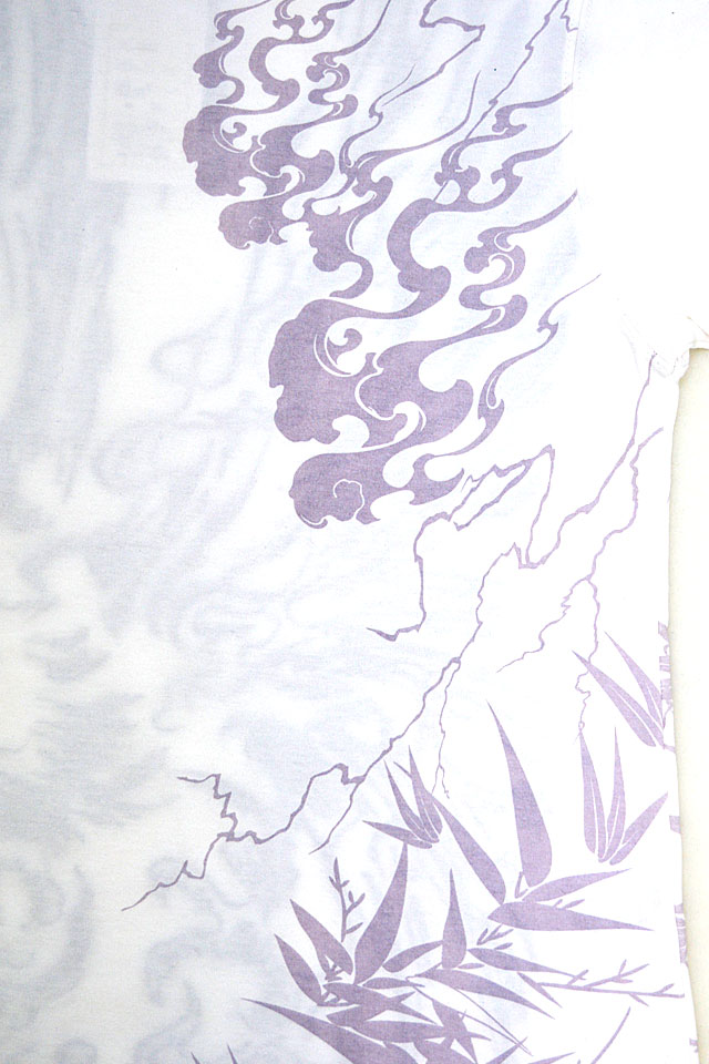 左身頃にはバック同様、炎と笹のシルエットをプリントしています。