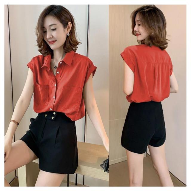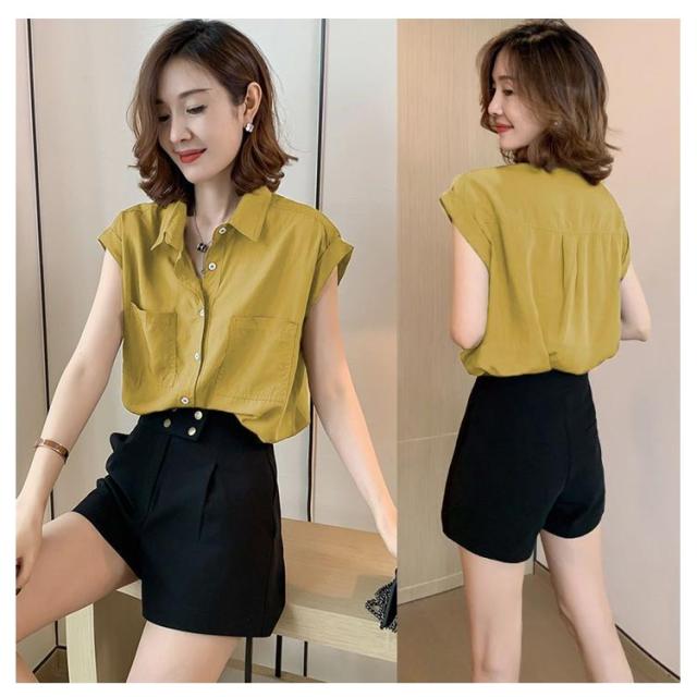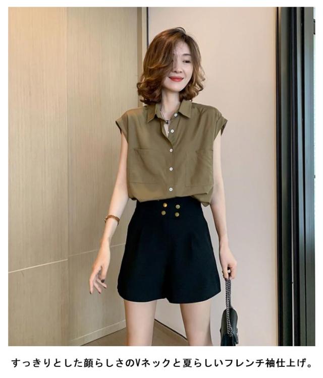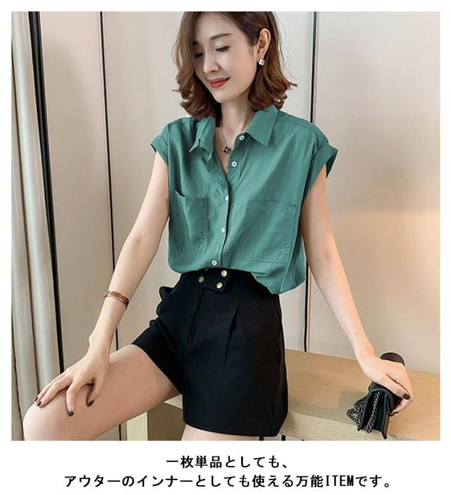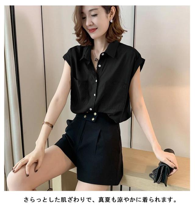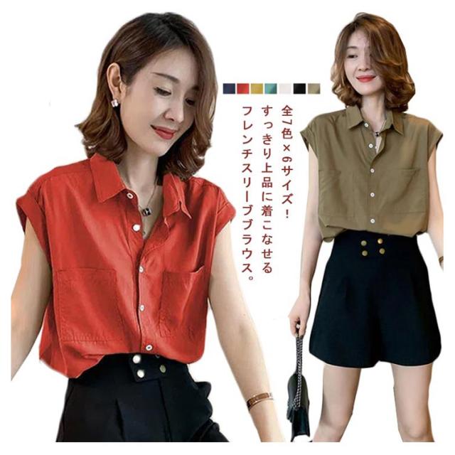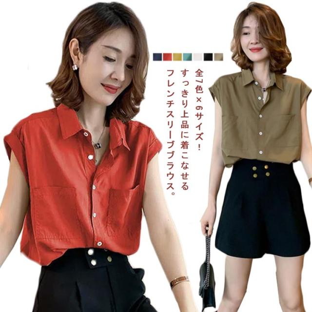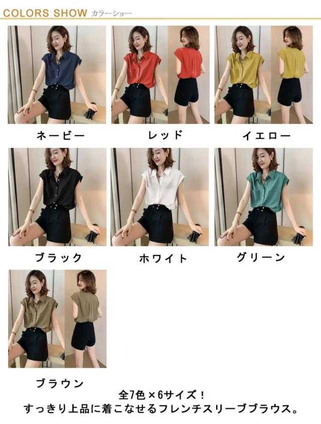 全7色×6サイズ!シャツブラウス フレンチスリーブ シャツ 送料無料 レディース ブラウス 半袖 襟付き トップス 前開き シフォンシャツ オフィス カジュアル 夏 夏服 シンプル おしゃれ ゆったり 女性
