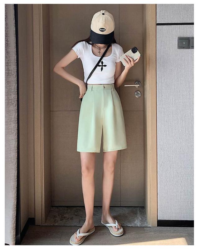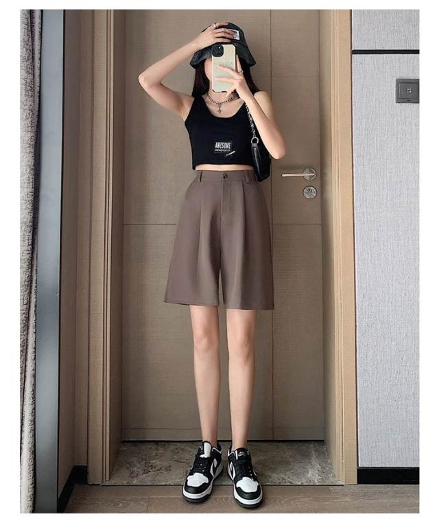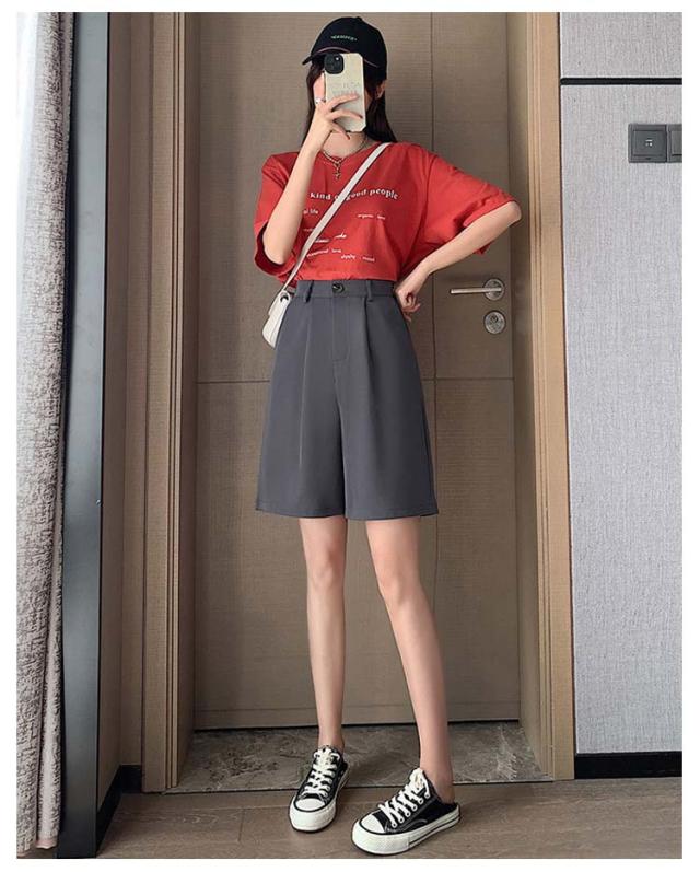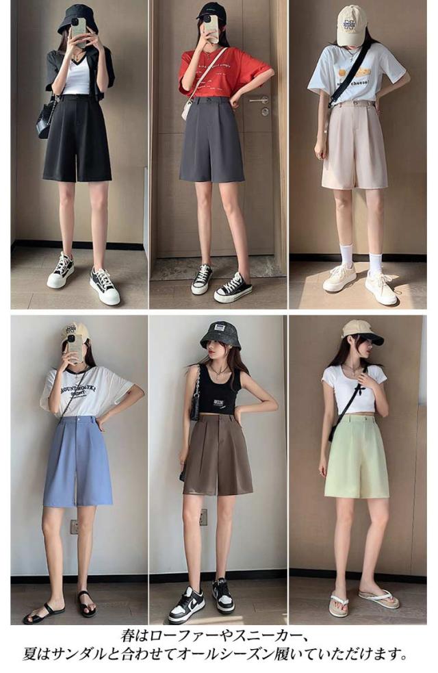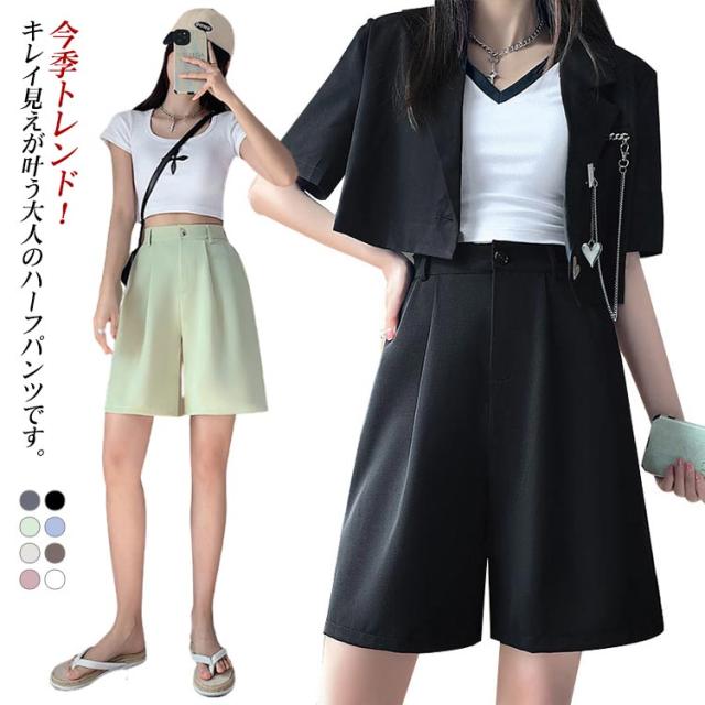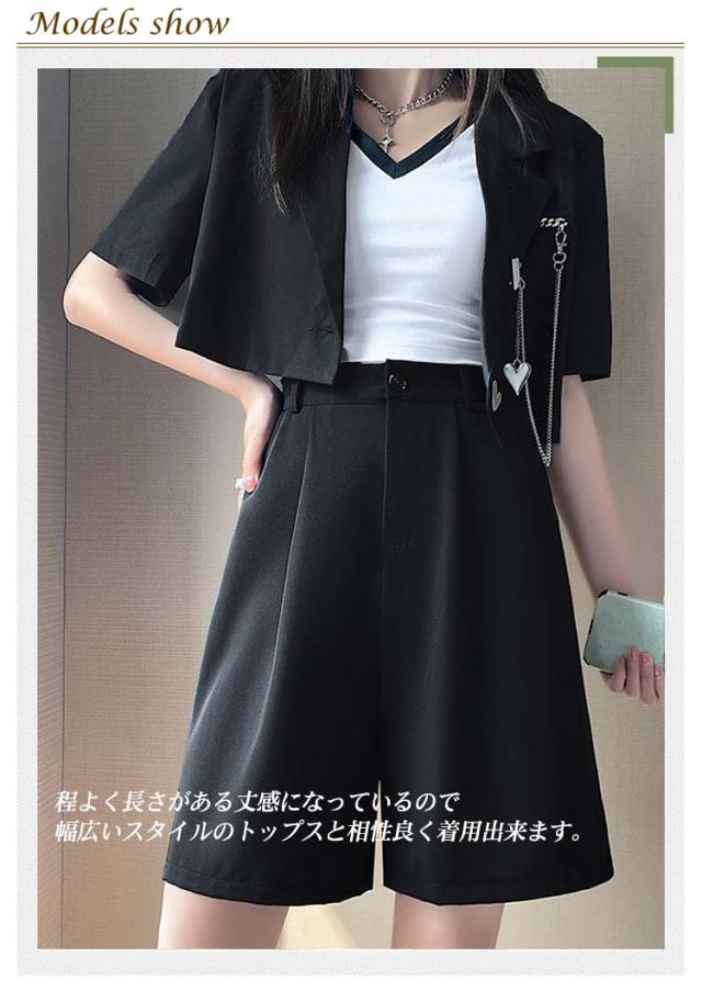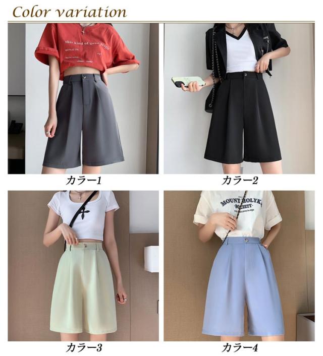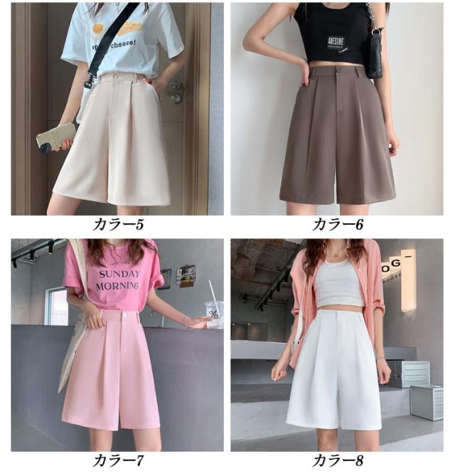 送料無料 スラックス ハーフパンツ レディース ワイドパンツ ストレートパンツ ショートパンツ ひざ丈 ミディアム ボトム キュロット 膝丈 五分丈 パンツ ハイウエスト お洒落 カジュアル 体型カバー ゆったり 大人 ママ 母 OL 通勤 きれいめ 春 秋