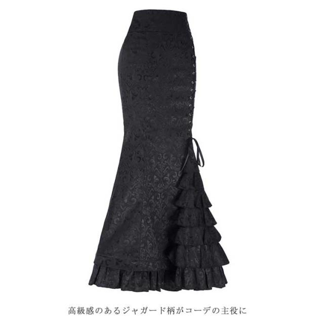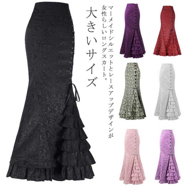 マーメイドスカート レディース ロングスカート ジャガード柄 レースアップ ロング フレアスカート ティアード タイトスカート Aライン マキシスカート 体型カバー ボトムス 大きいサイズ きれいめ フェミニン 上品 オフィス カジュアル 通勤 結婚式 春 春夏 送料無料