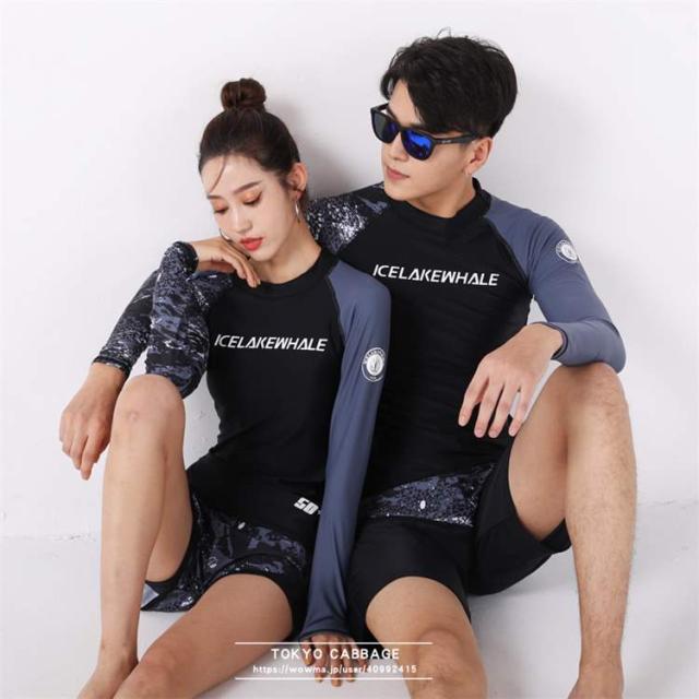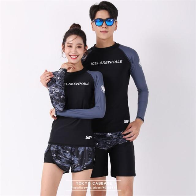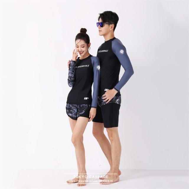 ペア水着 水着 ラッシュガード ラッシュガード ペア カップル 長袖 ペアルック 水着 レディース 上下 セット メンズ ウェットスーツ セットアップ 競泳 人気 大きいサイズ おしゃれ 体型カバー 短パン UV 紫外線 対策 トップス ブラー ショートパンツ ショーツ pa-230317-23