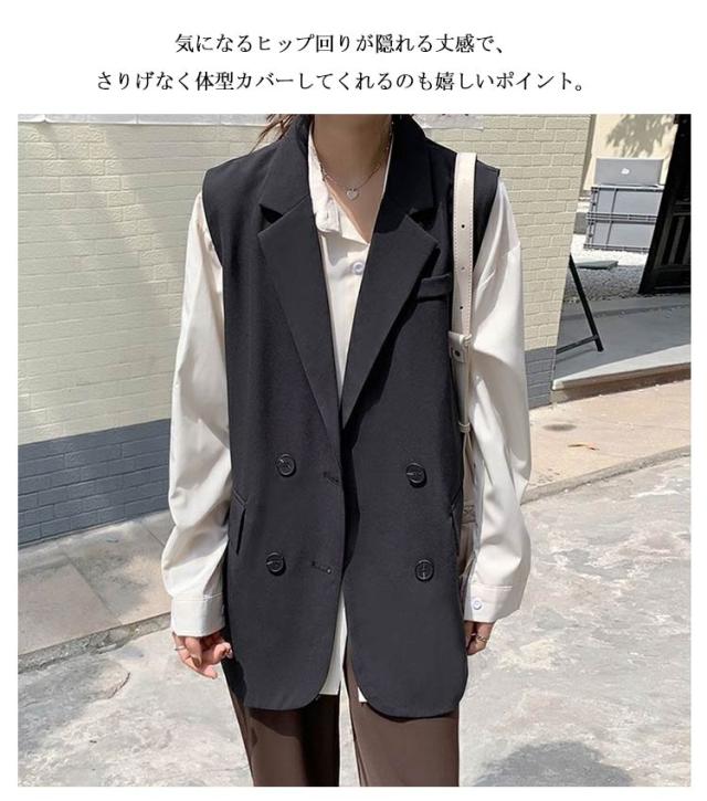 テーラードベスト レディース トップス ブレザー ベスト ジレ ジャケット ノースリーブ ライトアウター ロングベスト ロングジレ 羽織り 前開き 無地 きれいめ カジュアル レイヤード 通勤 ママスーツ フェミニン 20代 30代 40代