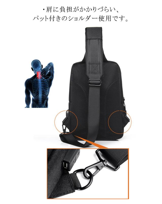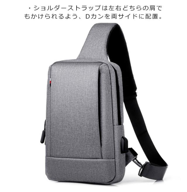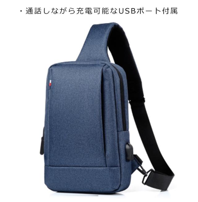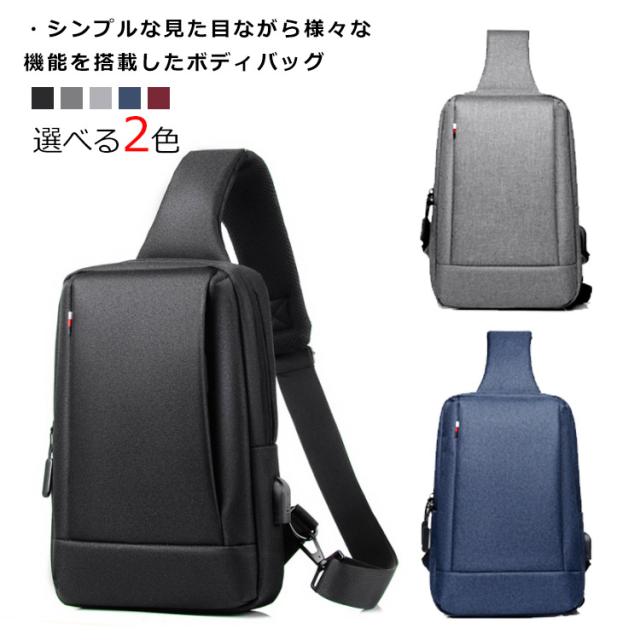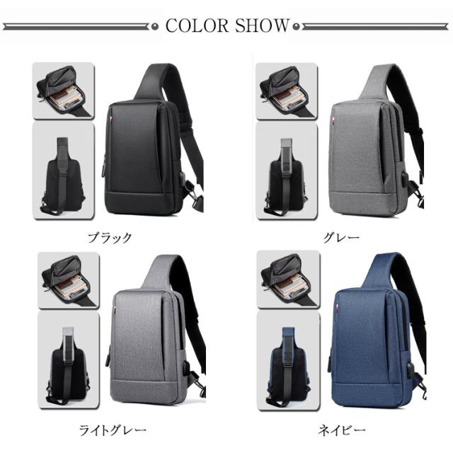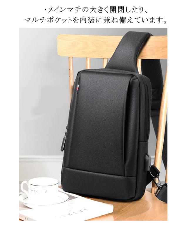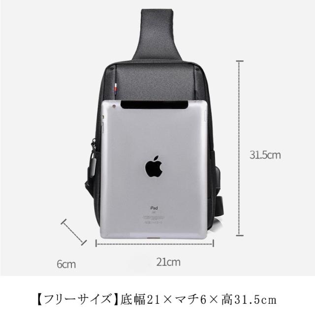 ボディバッグ メンズ 大容量 斜めがけバッグ 撥水加工 USBポート付き ipad収納 ショルダーバッグ 通勤 通学 男子 旅行 無地 全5色