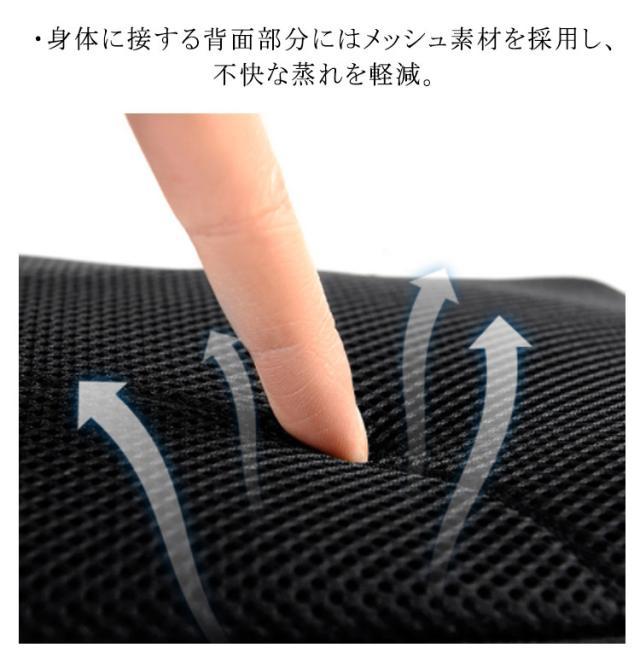 | ・シンプルな見た目ながら様々な機能を搭載したボディバッグ ・メインマチの大きく開閉したり、マルチポケットを内装に兼ね備えています。 ・肩に負担がかかりづらい、パット付きのショルダー使用です。 ・表面には水を弾きやすくする撥水加工を施しており、突然の雨にも安心。汚れが付きにくくお手入れの手間が少ないのもポイント。 ・身体に接する背面部分にはメッシュ素材を採用し、不快な蒸れを軽減。 ・ショルダーストラップは左右どちらの肩でもかけられるよう、Dカンを両サイドに配置。 ・通話しながら充電可能なUSBポート付属 | |