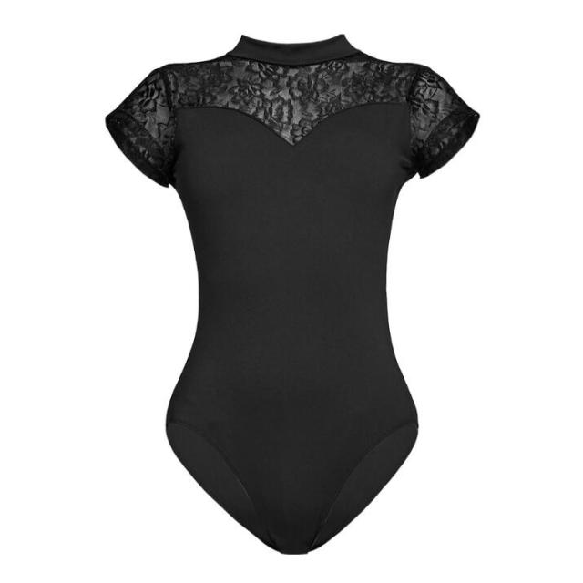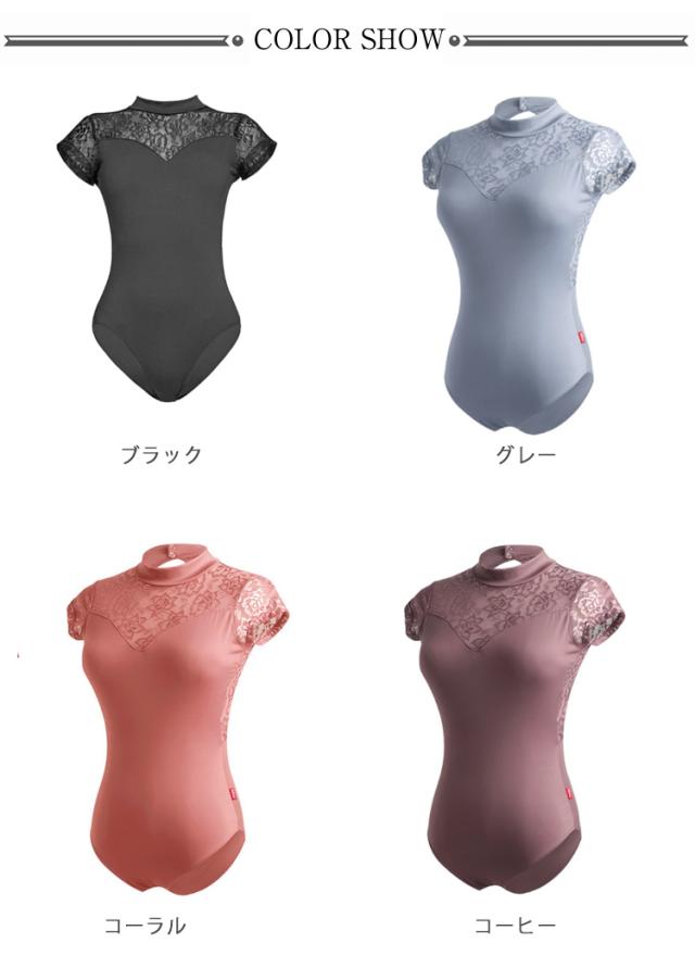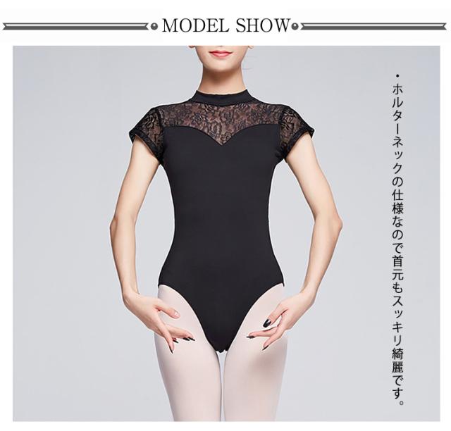 バレエ レオタード 大人 背中空き ホルターネック レース切替 フレンチスリーブ パッド入り スカート無しレオタード レッスン 新体操 バレエ用品 全4色